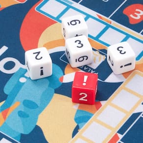 Nosso conjunto apresenta um tapete Dudo de neoprene com layout especial, 6 brancos marcantes com o símbolo selvagem “!” copos de dados de couro sintético e 6 conjuntos de 5 dados com símbolos curingas no lugar do pip “1". Você não encontrará uma edição mais exclusiva do Dudo! Graças ao nosso prático tapete de jogo, acompanhar as penalidades de lances e dados é muito fácil. Existe até um lugar para a regra especial “Palafico”. Esta edição é um conjunto de presentes exclusivo para fãs de dados e jogos de tabuleiro, ótimo para aniversários especiais, Natal e muito mais. Um item básico clássico para adicionar à noite de jogos em família.