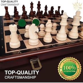 Descrição do produto: ? O jogo de xadrez de madeira é feito de nogueira, as 34 peças são cuidadosamente esculpidas e polidas à mão, o que as torna fáceis de fornecer ao jogar xadrez o melhor conforto tátil. ? O design leve e dobrável o torna portátil para carregar, um slot côncavo de modelo de peça de xadrez de esponja integrada para facilitar o armazenamento, não precisa se preocupar em perder peças de xadrez. ? As peças de xadrez de madeira esculpidas à mão são fixadas magneticamente ao tabuleiro, mesmo que o tabuleiro esteja empurrado ou inclinado, as peças permanecem no lugar durante o jogo. ? Conjunto de xadrez é um presente para adultos, crianças e jogadores de todas as idades. Promove o relacionamento entre crianças e amigos ou pais, compartilhando jogos de tabuleiro, adequados para ambientes internos e externos. Especificação: Material: nogueira Tamanho: 38 X 20 X 5 cm / 18,1 X 7,87 X 1,97 polegadas O pacote inclui: 1 x tabuleiro de xadrez de madeira. Observações: 1. Devido à diferença de luz e configuração de tela, a cor do item pode ser ligeiramente diferente das imagens. 2. Considere pequenas diferenças dimensionais devido a diferentes medidas manuais. 3. Se você tiver alguma dúvida ou problema com os produtos que recebeu, a tempo. - ?Material?: O jogo de xadrez de madeira é feito de nogueira, as 34 peças são cuidadosamente esculpidas e polidas à mão, o que as torna fáceis de fornecer ao jogar xadrez o melhor conforto tátil. A superfície lisa de todo o tabuleiro de xadrez, reduz o som ao se mover e garantir que a superfície do tabuleiro não seja arranhada. - ?Design de tabuleiro de xadrez dobrável?: O design leve e dobrável o torna portátil para carregar, um slot côncavo de modelo de peça de xadrez de esponja integrada para facilitar o armazenamento, não precisa se preocupar em perder peças de xadrez. O tamanho compacto do tabuleiro se adapta à sua bagagem ou bolsa ao viajar, enquanto as peças de xadrez são grandes o suficiente para manusear, jogando com conforto. - ?Xadrez magnético?: As peças de xadrez de madeira esculpidas à mão são magneticamente presas ao tabuleiro, mesmo que o tabuleiro esteja empurrado ou inclinado, as peças permanecem no lugar durante o jogo. que permite que você jogue o jogo de tabuleiro na estrada, no carro, avião ou qualquer veículo móvel. tornando este jogo de tabuleiro portátil dobrável ideal para viagens ou uso ao ar livre. - ?Iluminação inteligente?: O xadrez pode promover criatividade e inteligência, treinar concentração e paciência, acompanhar as crianças a crescerem juntas e melhorar o pensamento lógico das crianças. Não apenas adequado para crianças brincando com diversão, este conjunto de xadrez magnético pode ser uma ferramenta útil para iluminar sua família e estimular sua inteligência. É um jogo adequado para adultos e crianças desfrutarem de bons momentos juntos. - ?Amplamente utilizado?: Conjunto de xadrez é um presente para adultos, crianças e jogadores de todas as idades. Promove o relacionamento entre crianças e amigos ou pais, compartilhando jogos de tabuleiro, adequado para ambientes internos e externos, amplamente utilizado em escolas, famílias, acampamento e viagens, é o jogo de tabuleiro mais popular, pode ser utilizado como presente no Natal, Dia das Crianças, aniversário, presente de Ano Novo para crianças ou amigos, pais.