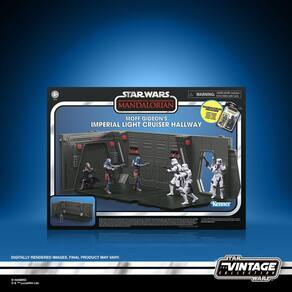 STAR WARS The Vintage Collection Moff Gideon's Imperial Light Cruiser Hallway, The Mandalorian Conjunto colecionável de 9 cm - STAR WARS: THE MANDALORIAN: Este conjunto de bonecos de ação de 9,5 cm (9,5 cm) é inspirado na série live-action da Disney+ – um ótimo presente para colecionadores e fãs de Star Wars a partir de 4 anos - Design e decoração premium: os fãs de Star Wars podem exibir este conjunto de 9,5 cm -- com decoração e design precisos da série -- em suas coleções - Inclui boneco cardado: voltando aos brinquedos vintage autênticos dos anos 1970 e 1980, o boneco incluído apresenta um número VC exclusivo para colecionabilidade - Acessórios inspirados na série: o boneco incluído vem com 2 acessórios - Construa sua cena: encontre outros colecionáveis vintage de Star Wars para construir uma coleção épica em sua prateleira! (Cada um é vendido separadamente. Sujeito à disponibilidade) - PRIVADOR MANDALORIANO: Depois de ser apreendido por uma equipe de ataque liderada por Din Djarin e Bo-Katan Kryze, uma equipe de corsários mandalorianos liderada por Axe Woves agora comanda o cruzador leve imperial de Moff Gideon