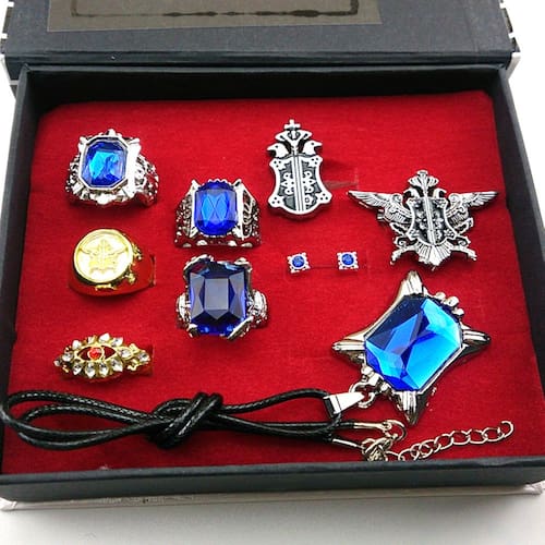 São apresentadas 8 peças de um lindo conjunto de colares Kuroshitsuji Black Bulter Sebastian Ring, brincos Contract Brooch, um acabamento requintado, a restauração definitiva da imagem de anime, com ótimo valor de coleção, também pode ser um presente para familiares e amigos, além de um ornamento perfeito para decoração de casa. É feito principalmente de liga prateada/banhada a ouro, adequada para maiores de 27 anos.