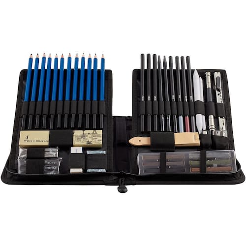 Material: madeira Tamanho: 30 cm × 20 cm × 3,9 cm Peso: 780 g Conjunto completo de desenho: este conjunto de lápis de 48 peças inclui tudo o que você precisa para esboçar e sombrear, como lápis de grafite, lápis de carvão, borrachas, apontador e ferramentas de mistura. Grafite e carvão de alta qualidade: o conjunto apresenta lápis de grafite macios e duros para detalhes finos e lápis de carvão ricos para sombreamento mais profundo, proporcionando versatilidade para vários estilos artísticos. Ideal para sombreamento e detalhamento: perfeito para criar texturas, luzes e sombras realistas, este kit é ideal para sombrear, desenhar retratos, paisagens e obras de arte mais detalhadas. Portáteis e organizadas: todas as ferramentas estão bem embaladas em um estojo durável com compartimentos, facilitando o armazenamento e o transporte de suprimentos para desenhar em casa ou em qualquer lugar. Perfeito para todos os níveis de habilidade: seja você um iniciante explorando o desenho ou um artista profissional refinando seu ofício, este conjunto oferece ferramentas de alta qualidade para todos os seus projetos de esboço e desenho.