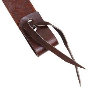 Um Conjunto Látego e Contra Látego da marca A Pantaneira fabricado em couro na cor Havana. O contra látego possui couro duplado com costuras reforçadas, fivela de aço inox modelo Coração e passador trançado em couro meio cortume e o látego é fixado por tento de couro.