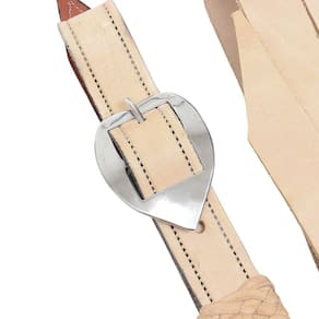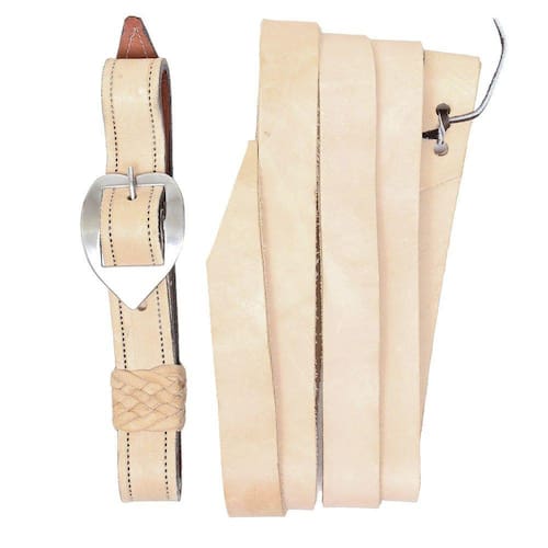 Conjunto Látego e Contra Látego A Pantaneira fabricado em couro na cor Natural. O contra látego possui couro duplado com costuras reforçadas, fivela de aço inox modelo Coração e passador trançado em couro meio curtume e o látego é fixado por tento de couro.