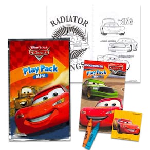 - Este conjunto de suprimentos para festas da Cars inclui 24 mini pacotes Grab n Go Play, cada um incluindo um livro de colorir em miniatura, adesivos e utensílios para colorir.