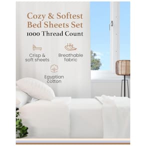 Este conjunto de lençóis queen brancos, feito em cetim premium, é confeccionado com 100% algodão egípcio de alta qualidade e possui uma contagem de fios de 1000. Eles proporcionam um toque suave e aveludado, similar à seda, garantindo luxo e conforto excepcionais durante toda a noite.