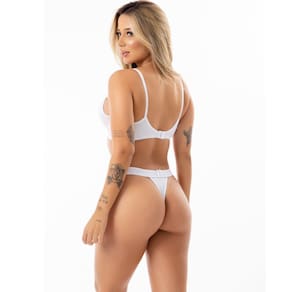 Possui calcinha fio dental com lacinho no bumbum e forro em algodão