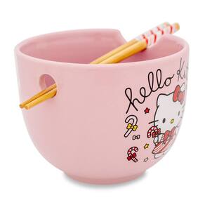 Faça dele um OLÁ KITTY HOLIDAY Sempre na estação, a Hello Kitty está pronta para ajudá-lo a servir todos os seus favoritos de férias com este conjunto exclusivo de tigela de ramen e pauzinhos. Mais doce do que doces de hortelã-pimenta, a Hello Kitty adorna esta tigela de macarrão usando um lindo vestido de festa listrado que lembra uma bengala doce. Como o amor da Hello Kitty por todas as coisas doces, você saboreará o design superfofo desta tigela com cada mordida deliciosa. Você nunca pode ter muitos amigos beba a doçura das festas de fim de ano com esta tigela de cerâmica de alta qualidade projetada para uma porção generosa de seus pratos favoritos. Os entalhes práticos facilitam a alimentação com os pauzinhos de madeira incluídos, garantindo que você nunca perca uma mordida. A maneira perfeita de desfrutar de todos os sabores festivos da estação, de macarrão a sopas e caril. Compartilhe a alegria do feriado com a Hello Kitty, enriquecendo ainda mais cada refeição com este conjunto de louça de ramen oficialmente licenciado do mundo festivo de Sanrio. Instruções de cuidado: fácil de cuidar, pode ir à máquina de lavar louça no micro-ondas. Os pauzinhos são lavados apenas à mão - Diga olá aos feriados: tudo fica melhor com bons amigos como companhia. Compartilhe a maravilha das férias com este conjunto exclusivo de tigela de ramen e pauzinhos com a única Hello Kitty pronta para as festividades da estação. - Estilo super doce: esta deliciosa tigela de macarrão rosa apresenta uma Hello Kitty festiva vestida com o melhor de suas férias. Cercada por bastões de doces, estrelas e laços, a Hello Kitty mal pode esperar para adoçar seu mundo com cada prato. - O QUE ESTÁ INCLUÍDO: Aproveite todas as suas delícias de férias usando a tigela de macarrão que comporta aproximadamente 590 ml dos seus favoritos da estação. Vem com um par de pauzinhos de madeira que podem ser colocados dentro do entalhe embutido da tigela. - O melhor da estação: esta tigela de cerâmica sem BPA é feita para uso duradouro para acompanhar todas as refeições mais alegres da estação. A tigela é adequada para micro-ondas e máquina de lavar louça. Os pauzinhos são lavados apenas à mão. - COLETIVEL OFICIAL SANRIO: Tenha um feriado muito feliz com este conjunto de louça de ramen oficialmente licenciado com uma Hello Kitty festiva. Perfeito para macarrão, sopas, caril e todos os seus pratos sazonais favoritos.