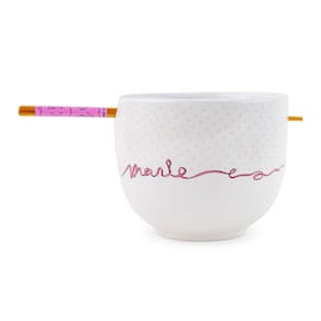 - PREPARADA E BEM ALIMENTADA: Maravilhosa em branco, esta tigela clássica de ramen é perfeita para guardar todos os seus favoritos. Com a irreprimível Marie, as fitas rosa que ela usa combinam com as que soletram seu nome no lado oposto.