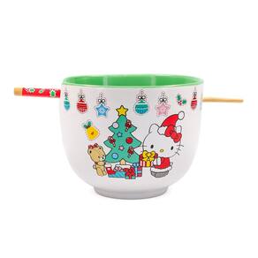 SABOREIE CADA FERIADO Faça de cada refeição uma celebração festiva com este conjunto exclusivo de taças de ramen e pauzinhos. A cena emocionante ganha vida com a Hello Kitty vestida de Papai Noel, colocando alegremente os presentes debaixo de uma árvore de Natal. Para aumentar a alegria natalina, a borda da tigela de ramen é adornada com um padrão colorido de enfeites que complementa perfeitamente o design sazonal. Emparelhado com a tigela está um conjunto de pauzinhos de madeira reutilizáveis, com um envoltório festivo nas pontas. TRAZ PERSONALIDADE À SUA MESA Este conjunto encantador traz o calor e a magia da temporada para a hora das refeições. Se você está saboreando macarrão, curry, bolinhos ou outro de seus pratos favoritos, este conjunto de tigela de ramen e pauzinhos rapidamente se tornará sua maneira favorita de desfrutar de refeições durante a época mais maravilhosa do ano. Sinta-se um pouco mais alegre a cada mordida usando este conjunto de louças de ramen oficialmente licenciado, inspirado no mundo festivo da Sanrio. INSTRUÇÕES DE CUIDADO Fácil de cuidar. Lavável na máquina de lavar louça. Os pauzinhos podem ser lavados apenas à mão.