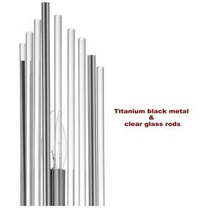 As hastes de vidro transparente podem ser ajustadas conforme suas necessidades, oferecendo maior flexibilidade na instalação. O suporte de parede é feito de aço inoxidável soldado e vidro cristal, com um design texturizado em metal dourado que exala brilho e elegância.