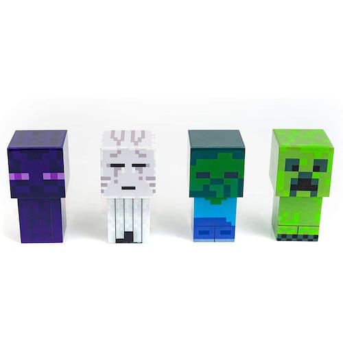 Mini Mob Attack: Baseado em populares máfias hostis nos jogos de minecraft, este Minecraft Figure Mood Light Set é especialmente projetado com fãs em mente e prontos para iluminar seu espaço. Authentic Designs: Este conjunto de 4 peças de Minecraft Figure Mood Lights inclui um Creeper, Enderman, Ghast e um Zombie. Perfeito para colocar em exibição e adicionar um toque geek ao seu espaço. Tamanho Colecionável: Cada uma das Mini Minecraft Figure Mood Lights tem aproximadamente 2,5 polegadas de altura, apenas o tamanho certo para se acomodar com seus outros brinquedos e colecionáveis Minecraft. Bateria Operada: As figuras de Minecraft são alimentadas por 3 baterias de cés de botão (incluídas), iluminando seu espaço com um brilho suave das luzes LED. Inclui o interruptor de liga/desliga na parte inferior para preservar as baterias. Mercadoria Oficial: Este Mini Mob Mood Light Set de 4 peças é um colecionável minecraft oficialmente licenciado. Perfeito para qualquer fã de Minecraft que queira melhorar sua decoração de casa com itens essenciais para quartos nerds.