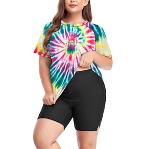- Fatos de banho modernos: o conjunto de camisa de natação plus size inclui top de maiô de manga curta e calcinha boyshort de cintura alta com calcinha macia embutida. Os trajes de banho de cobertura total com ajuste solto permitem total amplitude de movimento durante o movimento, o que é longo o suficiente para proteger a fricção interna das coxas