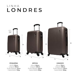 O Kit de malas de viagem Londres com rodas 360, é a mais escolhida da Swiss Move, onde estilo clássico e praticidade se encontram, além disso o kit conta com uma mala de viagem de mão pequena para levar à bordo no avião. Com um design de listras verticais e cores neutras, as malas PMG refletem um toque de sofisticação que se adapta a qualquer ocasião.
