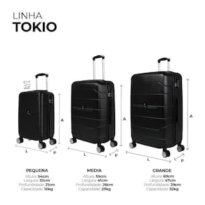 O Kit de malas de viagem ABS Tokio rodas duplas da Swiss Move é composto por três malas nos tamanhos P, M e G. A mala pequena serve como mala de mão, pois suporta até 10kg, é ideal para ir a bordo. As malas média e mala grande já são para despachar, ideal para viagens mais longas ou viagem internacional. Essas malas são práticas, leves, fáceis de transportar e perfeitas para qualquer destino.