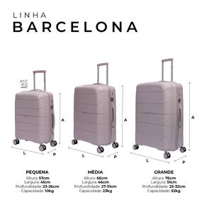 Viaje com praticidade e segurança com o Conjunto de Malas Barcelona P, M e G, produzido em polipropileno (PP) - material leve, flexível e resistente a impactos.