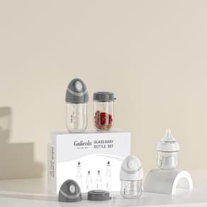 Gulicola Mamadeira de vidro natural, pacote com 4 recém-nascidos, 0 meses ou mais, 85 g e 142 g - preto e branco - Conjunto de presentes essenciais para recém-nascidos: inclui 2 pacotes de mamadeiras de 85 g com bicos de fluxo extra lento; 2 pacotes de mamadeiras de 150 ml com bicos de fluxo lento, 2 contagens de tampas de armazenamento; - Vidro borossilicato premium: sem BPA, BPS, ftalatos e toxinas, resistente ao calor, tornando-o uma opção tranquila para os pais; - Novo design de mamilo: aponta no bico para a pega apropriada, treina bebês com hábitos de sucção corretos na amamentação; - Ótimo para mães que amamentam: o bico ultramacio imita a sensação natural, a flexibilidade e o movimento da amamentação, ajuda o bebê amamentado a se agarrar naturalmente, as aberturas anticólicas permitem que seu bebê beba continuamente sem ofegar por ar ou beber bolhas; - Fácil de limpar: gargalo largo com apenas 4 peças e pode ser facilmente limpo e remontado quantas vezes for necessário, esterilizado em aquecedor de garrafas, micro-ondas, esterilizador e água fervente.