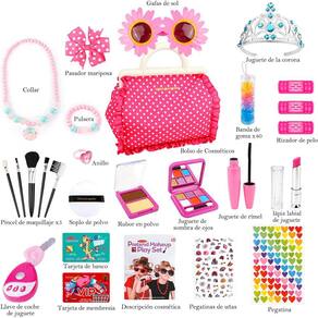 “Tipo de item: conjunto de maquiagem para meninas de 27 anos, brinquedos de maquiagem laváveis para meninas, jogo de simulação de princesa, estilo princesa, adequado para presentes para meninos de 4, 5, 6, 7, 9, 10 anos; material: algodão, poliéster, couro sintético; gênero: feminino, feminino; estilo: moderno, casual e sexy; estação: primavera, verão, outono e inverno.”