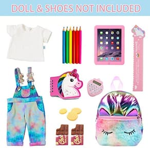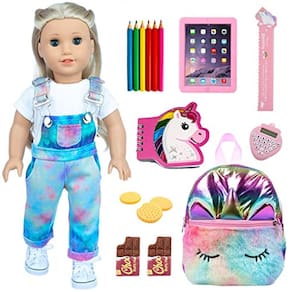 DONTNO 18 Polegadas Acessórios de Boneca Americana, Material Escolar Conjunto para Boneca Americana de 18 Polegadas Boneca- Boneca, Bolsa, Lápis, Régua,