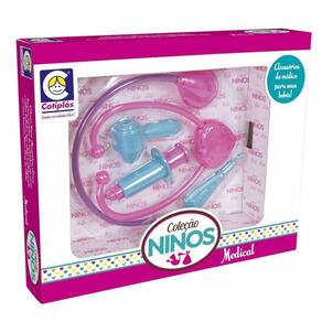 A cotiplas fez essa linda boneca para suas pequenas continuarem brincando pois a cotiplas tem uma responsabilidade de fazer milhões de crianças felizes e se divertindo , Ninos 4 Pecas Com Estetoscopio Medical Características Marca: Cotiplás Modelo: 2222 Código de Barras: 7896964622227 Produto Certificado: Inmetro/ Anvisa Itens Inclusos: 1 Ninos Acessórios Médicos Cotiplás 2222. Recomendação: Recomendado para crianças maiores de 3 anos de idade. Restrição de Idade: Não recomendável para menores de 3 anos de idade. Peso: 0,412 Kg Composição / Material: Plástico