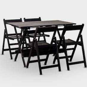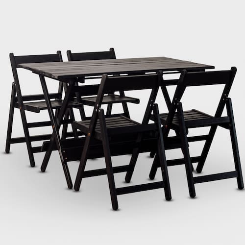 Conjunto dobrável de uma mesa com 04 cadeiras Davos na cor preta.