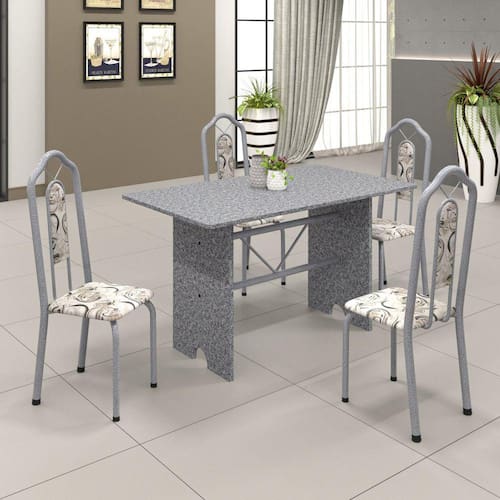 Quer deixar sua casa completa com um toque especial? Uma dica bacana de como transformar sua cozinha, deixando-a mais receptiva e bonita? Então você precisa de móveis indispensáveis para deixar seu lar muito mais aconchegante, receptivo e sempre disponível para receber a visita de amigos, familiares e convidados. Você vai se apaixonar por este incrível Conjunto de Mesa com 4 Cadeiras Bianca. Ideal para cozinha, ele é a marromhor opção para completar o espaço. Aproveite!! Acabamento da Cadeira/Banco: Pintura Texturizada Acabamento da Mesa: Acetinado Almofada do assento: Fixa Altura do Conjunto: Ambiente Principal: Cozinha Apoio para Braços Estofado: Cadeira/Banco estofada: Sim Cadeira/Banco suporta até: 120 Complexidade da Montagem: Média: pode ser montado por mais de uma pessoa e/ou necessite de maior conhecimento para montagem Cor: Martelado Perola/Granito Ocre/Arabesco Cor do Produto: Martelado Pérola/Granito Ocre/Arabesco Enchimento do Assento: Espuma D-16 Enchimento do Encosto: Escala de Brilho: Fosco Espessura do Tampo: 1.5 Estrutura do Assento: MDP 15mm Estrutura do Encosto: Informações Complementares: Itens Inclusos: 1 Mesa, 4 Cadeiras, Kit Ferragens e Manual de Montagem Linha ou Coleção: Manual de Especificação Técnica: https://cdn2.madeiramadeira.com.br/atributo/soma-moveis-ltda/1144096-manual-de-montagem-cad-bianca-rev-0-0.pdf Manual de Montagem e Instalação: https://cdn2.madeiramadeira.com.br/atributo/soma-moveis-ltda/1144095-manual-de-montagem-base-070-e-071-rev-1-0.pdf Material da Base da Mesa: Granito Material da Estrutura da Cadeira: Aço Medida da Base (A x L x P): Medida da Cadeira/Banco (A x L x P): 108x37x40cm Medida da Mesa (A x L x P): 75x75x120cm Medida do Canto Alemão (A x L x P): Medida do Suporte Giratório (L x C x E): Medida do Tampo (L x C x E): 120x75x1,5cm Mesa suporta até: 10 Necessita Montagem: Sim Origem do Produto: Nacional Peso da Cadeira/Banco: 3.68 Peso da Mesa: 82.73999999999999 Possui Apoio para Braços: Não Possui Apoio Para os Pés: Não Possui Suporte Giratório: Não Recomendações de Uso, Manutenção e Limpeza: Não permitir que molhe os pés da base, usar um pano de tecido macio e seco, evitar detergentes, alvejantes e produtos químicos de limpeza; no tampo usar tecido macio levemente umedecido. Revestimento da Cadeira/Banco: Couro Ecológico Sistema de Montagem: Parafusos Tipo de Madeira Maciça da Base da Mesa: Tipo de Madeira Maciça do Tampo: Vidro Temperado: