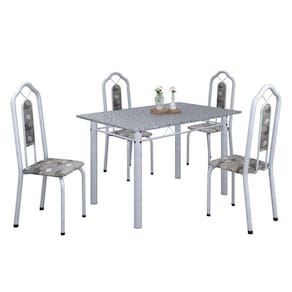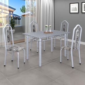 Conjunto de Mesa 120x75cm Tampo Granito com 4 Cadeiras Bianca Soma Móveis Paraopeba/Mart Pérola/Granito Ocre - Branco