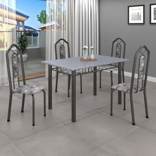 Quer deixar sua casa completa com um toque especial? Uma dica bacana de como transformar sua cozinha, deixando-a mais receptiva e bonita? Então você precisa de móveis indispensáveis para deixar seu lar muito mais aconchegante, receptivo e sempre disponível para receber a visita de amigos, familiares e convidados. Você vai se apaixonar por este incrível Conjunto de Mesa com 4 Cadeiras Bianca. Ideal para cozinha, ele é a marromhor opção para completar o espaço. Aproveite!! Acabamento da Cadeira/Banco: Pintura Texturizada Acabamento da Mesa: Pintura Texturizada Almofada do assento: Altura do Conjunto: Ambiente Principal: Cozinha Apoio para Braços Estofado: Cadeira/Banco estofada: Sim Cadeira/Banco suporta até: 120 Complexidade da Montagem: Baixa: pode ser montado por uma pessoa sozinha Cor: Paraopeba/Mart Prata/Granito Ocre Cor do Produto: Paraopeba/Mart Prata/Granito Ocre Enchimento do Assento: Espuma D-16 Enchimento do Encosto: Escala de Brilho: Semi-Brilho Espessura do Tampo: 20 Estrutura do Assento: Assento em MDP de 15mm com couríssimo. Estrutura do Encosto: Informações Complementares: Itens Inclusos: 1 Mesa, 4 Cadeiras, Kit Ferragens e Manual de Montagem Linha ou Coleção: Manual de Especificação Técnica: Manual de Montagem e Instalação: https://cdn2.madeiramadeira.com.br/atributo/soma-moveis-ltda/1190112-ilovepdf-merged-37.pdf Material da Base da Mesa: Aço Material da Estrutura da Cadeira: Aço Medida da Base (A x L x P): Medida da Cadeira/Banco (A x L x P): 108x37x40cm Medida da Mesa (A x L x P): 75x75x120cm Medida do Canto Alemão (A x L x P): Medida do Suporte Giratório (L x C x E): Medida do Tampo (L x C x E): 120x75x2cm Mesa suporta até: 10 Necessita Montagem: Sim Origem do Produto: Nacional Peso da Cadeira/Banco: 3.68 Peso da Mesa: 58.08 Possui Apoio para Braços: Possui Apoio Para os Pés: Não Possui Suporte Giratório: Não Recomendações de Uso, Manutenção e Limpeza: Não permitir que molhe os pés da base, usar um pano de tecido macio e seco, evitar detergentes, alvejantes e produtos químicos de limpeza; no tampo usar tecido macio levemente umedecido. Revestimento da Cadeira/Banco: Couro Ecológico Sistema de Montagem: Parafusos Tipo de Madeira Maciça da Base da Mesa: Tipo de Madeira Maciça do Tampo: Vidro Temperado: