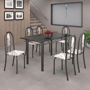 Quer deixar sua casa completa com um toque especial? Uma dica bacana de como transformar sua cozinha, deixando-a mais receptiva e bonita? Então você precisa de móveis indispensáveis para deixar seu lar muito mais aconchegante, receptivo e sempre disponível para receber a visita de amigos, familiares e convidados. Você vai se apaixonar por este incrível Conjunto de Mesa com 6 Cadeiras IRIS A. Ideal para cozinha, ele é a melhor opção para completar o espaço. Aproveite!! Medida da Mesa (A x L x P): 75 cm x 75 cm x 140 cm Peso da Mesa: 61,12 kg Mesa suporta até: 10.0000 Acabamento da Cadeira/Banco: Pintura Texturizada Acabamento da Mesa: Pintura Texturizada Ambiente Principal: Cozinha Cadeira/Banco estofada: Sim Cadeira/Banco suporta até: 120.0000 codigo_ean: 7908308751736 Complexidade da Montagem: Média: pode ser montado por mais de uma pessoa e/ou necessite de maior conhecimento para montagem Cor: Arabesco/Martelado Prata/Ardósia Cor do Produto: Arabesco/Martelado Prata/Ardósia Enchimento do Assento: Espuma D-16 Escala de Brilho: Fosco Espessura do Tampo: 15 mm Estrutura do Assento: MDP Itens Inclusos: 1 Mesa, 6 Cadeiras, Kit Ferragens e Manual de Montagem Manual de Montagem e Instalação: https://product-hub-prd.madeiramadeira.com.br/833866/documents/c4e95003-a9bc-4ab8-a11b-2eb2035433401216426irisa2irisa1merged.pdf Material da Base da Mesa: Aço Material da Estrutura da Cadeira: Aço Material do Tampo: Ardósia Medida da Cadeira/Banco (A x L x P): 96 cm x 36 cm x 41 cm Medida do Tampo (L x C x E): 75 cm x 140 cm x 1,5 Necessita Montagem: Sim Origem do Produto: Nacional Peso da Cadeira/Banco: 4,28 kg Possui Apoio Para os Pés: Não Quantidade de Cadeiras: 6 Quantidade de Lugares: 06 Recomendações de Uso, Manutenção e Limpeza: Não permitir que molhe os pés da base, usar um pano de tecido macio e seco, evitar detergentes, alvejantes e produtos químicos de limpeza; no tampo usar tecido macio levemente umedecido. Revestimento da Cadeira/Banco: Couro Ecológico Sistema de Montagem: Parafusos Ean: 7908308751736