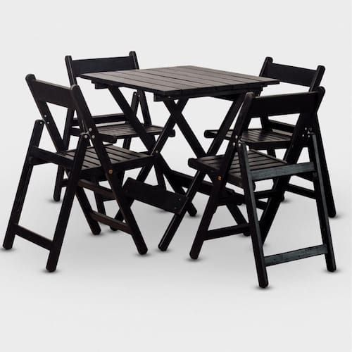 Conjunto dobrável de uma mesa com 04 cadeiras Davos na cor preta.