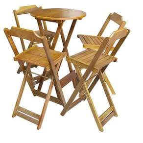 Conjunto De Mesa Bistrô De Madeira Com 4 Cadeiras Dobravel Ideal Para Bar E Restaurante Mel é ideal para bares, restaurantes, estabelecimentos, áreas de lazer e tambem para sua casa. Feito em madeira maciça, tornando resistentes e duráveis. Seu design permite que seja encaixado em qualquer ambiente, trazendo um toque a mais para seu estabelecimento. Além de sua durabilidade, o que lhe trará conforto para servir seus clientes. Por ser dobrável torna-se mais fácil guardar, manusear e limpar o produto. Atenção: EVITE USAR PRODUTOS ABRASIVOS E QUíMICOS PARA LIMPEZA DO PRODUTO, aconselha-se o uso de pano umedecido para melhor conservação; mantenha o produto fora de chuva e sol constantes. OBS: MDF ULTRA MESA Cor: Mel Modelo: Bistrô Dobravel Dimensões: Altura 99cm | Largura 55cm | Profundidade 55cm CADEIRA Cor: Mel Modelo: Bistrô Dobravel Dimensões: Altura 100cm | Largura 38cm | Profundidade 37cmConjunto de Mesa Bistrà de Madeira com 4 Cadeiras Dobravel Ideal para Bar e Restaurante Mel