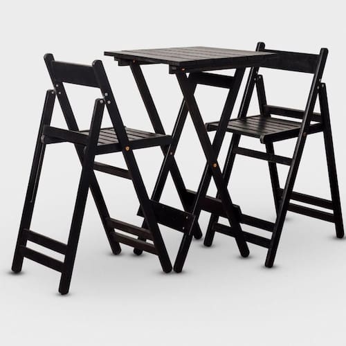 Conjunto dobrável de uma mesa bistrô com 02 cadeiras davos na cor preta.