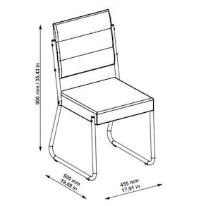 Cadeira: Estrutura: Tubo de aço 7/8 Estruturas: em MDP 15mm Acabamento: cromado e pintado Assento e encosto estofados: Sim Suporta: até 100kg Medidas: ergonômicas Sapatas: antirrisco e antirruído, que evitam o contato direto com o piso