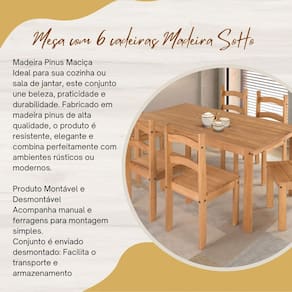 Conjunto de Mesa com 6 Cadeiras de Madeira Pinus Soho – Elegância e Conforto para Sua Sala de Jantar