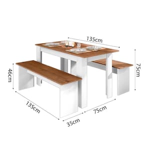 DIFERENCIAL:Mesa com 2 bancos, estrutura da mesa de 15 mm MDP, estrutura do banco, assento de 15mm , pés e trava de 25mm MDP, acabamento UV/Verniz.Fabricado com painéis de madeira reflorestada e certificada.