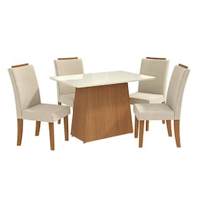 O Conjunto de Mesa com 4 Cadeiras Kappesberg Luna é a escolha perfeita para quem deseja renovar a sua sala com estilo. O produto é feito em Eucalipto/MDF/MDP e com revestimento em Pintura Touch, que confere maior resistência e durabilidade. O tampo de MDP 25 mm com vidro simples deixa sua mesa ainda mais bonita. As suas 4 cadeiras estofadas e revestidas em Linho combinam perfeitamente com a mesa e a sala.