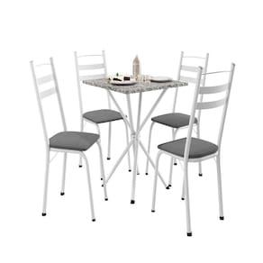 Transforme seu ambiente com elegância e funcionalidade com o Conjunto de Mesa Leia. Perfeito para cozinhas modernas, áreas de lazer ou varandas gourmet, este conjunto une o charme do design contemporâneo com a robustez de materiais de alta qualidade. proporcionando conforto e charme para o seu ambiente. Seja para cafés da manhã em família, jantares especiais ou encontros com amigos, este conjunto é a escolha certa para quem busca qualidade, funcionalidade e bom gosto. Medida da Mesa (A x L x P): 77x70x70 Peso da Mesa: 29,68 kg Mesa suporta até: 40 kg Acabamento da Cadeira/Banco: Pintura Epóxi Acabamento da Mesa: Pintura Epóxi Almofada do assento: Fixa Ambiente Principal: Cozinha Cadeira/Banco Estofada: Somente Assento Estofado Cadeira/Banco estofada: Somente Assento Estofado Cadeira/Banco suporta até: 120 kg codigo_ean: 7900288164162 Complexidade da Montagem: Média: pode ser montado por mais de uma pessoa e/ou necessite de maior conhecimento para montagem Configuração do Conjunto: Mesa com Cadeiras Cor: Branco/Platina/Ocre Cor da Base: Branco Cor do Produto: Branco/Platina/Ocre Cor do Tampo: Cinza De Canto (Canto Alemão): Não Escala de Brilho: Semi-Brilho Espessura do Tampo: 20 mm Formato do Tampo: Quadrado Informações Complementares: Tampo em Pedra Ocre Natural/ Produtos Embalado com Papelão e Plastico Termoecolhivel Itens Inclusos: 1 Mesa, 4 Cadeiras, Manual e Kit Ferragens Linha ou Coleção: Leia Manual de Montagem e Instalação: https://product-hub-prd.madeiramadeira.com.br/185456753/documents/fad056e9-e351-4e9c-bd48-f2fec3e2515f2963513527317485449567859.pdf Marca: Artefamol Material da Base da Mesa: Aço Carbono Material da Estrutura da Cadeira: Aço Carbono Material do Tampo: Pedra Material Principal: Aço Carbono Material Principal das Cadeiras/Bancos: Aço Carbono Medida da Cadeira/Banco (A x L x P): 92x34x41 Medida do Tampo (L x C x E): 70x70x2 Mesa Dobrável: Não Mesa Extensível: Não Montagem Flex: Não Necessita Montagem: Sim Origem do Produto: Nacional Peso da Cadeira/Banco: 3,5 kg Possui Apoio para Braços: Não Possui Apoio Para os Pés: Não Possui Prateleiras: Não Possui Suporte Giratório: Não Possui Vidro: Não Quantidade de Cadeiras: 4 Quantidade de Lugares: 04 Recomendações de Uso, Manutenção e Limpeza: Para manter seu móvel novo por muito mais tempo, evite locais úmidos, mantenha-o distante de líquidos e de fontes de calor. Evite a exposição prolongada ao sol. Para limpá-lo com segurança utilize uma flanela seca sem produtos abrasivos e nem lustra móveis. Sistema de Montagem: Pafusos, sapatas, Tipo de Encosto: Fixo