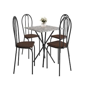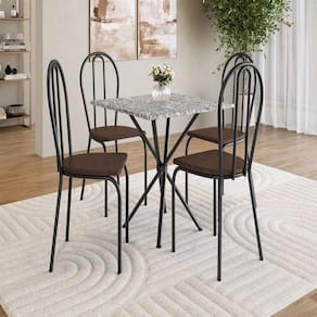 Transforme seu ambiente com elegância e funcionalidade com o Conjunto de Mesa Leia. Perfeito para cozinhas modernas, áreas de lazer ou varandas gourmet, este conjunto une o charme do design contemporâneo com a robustez de materiais de alta qualidade. proporcionando conforto e charme para o seu ambiente. Seja para cafés da manhã em família, jantares especiais ou encontros com amigos, este conjunto é a escolha certa para quem busca qualidade, funcionalidade e bom gosto. Medida da Mesa (A x L x P): 77x70x70 Peso da Mesa: 29,68 kg Mesa suporta até: 40.0000 Acabamento da Cadeira/Banco: Pintura Epóxi Acabamento da Mesa: Pintura Epóxi Almofada do assento: Fixa Ambiente Principal: Cozinha Cadeira/Banco Estofada: Somente Assento Estofado Cadeira/Banco estofada: Somente Assento Estofado Cadeira/Banco suporta até: 120.0000 codigo_ean: 7900288158956 Complexidade da Montagem: Média: pode ser montado por mais de uma pessoa e/ou necessite de maior conhecimento para montagem Configuração do Conjunto: Mesa com Cadeiras Cor: Preto / Imbuia / Ocre Cor da Base: Preto Cor do Produto: Preto / Imbuia / Ocre Cor do Tampo: Cinza De Canto (Canto Alemão): Não Escala de Brilho: Semi-Fosco Espessura do Tampo: 20 mm Estrutura do Encosto: Aço Carbono Formato do Tampo: Quadrado Informações Complementares: Tampo em Pedra Ocre Natural/ Produtos Embalado com Papelão e Plastico Termoecolhivel Itens Inclusos: 1 Mesa, 4 Cadeiras, Manual e Kit Ferragens Linha ou Coleção: Leia Manual de Montagem e Instalação: https://product-hub-prd.madeiramadeira.com.br/860756627/documents/f8d8074c-b0b2-49c9-8e06-492d00f0e51d2942858527317478471258976.pdf Marca: Artefamol Material da Base da Mesa: Aço Carbono Material da Estrutura da Cadeira: Aço Carbono Material do Tampo: Pedra Material Principal: Aço Carbono Material Principal das Cadeiras/Bancos: Aço Carbono Medida da Cadeira/Banco (A x L x P): 90x36,5x38 Medida do Tampo (L x C x E): 70x70x2 Mesa Dobrável: Não Mesa Extensível: Não Montagem Flex: Não Necessita Montagem: Sim Origem do Produto: Nacional Peso da Cadeira/Banco: 2,308 kg Possui Apoio para Braços: Não Possui Apoio Para os Pés: Não Possui Prateleiras: Não Possui Suporte Giratório: Não Possui Vidro: Não Quantidade de Cadeiras: 4 Quantidade de Lugares: 04 Recomendações de Uso, Manutenção e Limpeza: Para manter seu móvel novo por muito mais tempo, evite locais úmidos, mantenha-o distante de líquidos e de fontes de calor. Evite a exposição prolongada ao sol. Para limpá-lo com segurança utilize uma flanela seca sem produtos abrasivos e nem lustra móveis. Sistema de Montagem: Pafusos, sapatas, Tipo de Assento: Fixo Tipo de Encosto: Fixo