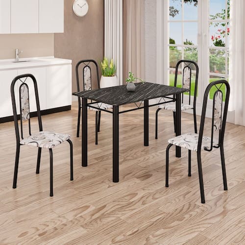 Conjunto de Mesa com 4 Cadeiras Lívia Arabesco/Preto