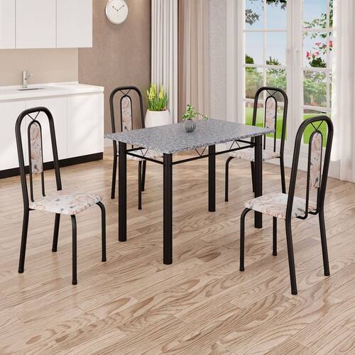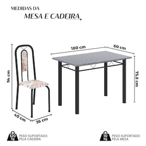 Quer deixar sua casa completa e prática? Uma dica bacana de como transformar o seu lar, deixando-o mais receptivo e bonito? Então você precisa de móveis indispensáveis para deixar seu lar muito mais aconchegante, receptivo e sempre disponível para receber a visita de amigos, familiares e convidados. Você vai se apaixonar por este incrível e moderno Conjunto de Mesa com 4 Cadeiras. Ideal para cozinha, ele é a melhor opção para completar o espaço que você desejar. Aproveite!! Medida da Mesa (A x L x P): 75,8 cm x 100 cm x 60 cm Peso da Mesa: 36,48 kg Mesa suporta até: 10 kg Acabamento da Cadeira/Banco: Pintura Texturizada Acabamento da Mesa: Pintura Texturizada Ambiente Principal: Cozinha Cadeira/Banco estofada: Somente Assento Estofado Cadeira/Banco suporta até: 120 kg codigo_ean: 7900288142603 Complexidade da Montagem: Baixa: pode ser montado por uma pessoa sozinha Cor: Bege / Preto Cor do Produto: Bege / Preto Cor Secundária: Bege De Canto (Canto Alemão): Não Escala de Brilho: Semi-Brilho Espessura do Tampo: 1,5 mm Estrutura do Assento: MDP Formato do Tampo: Retangular Itens Inclusos: 1 Mesa, 4 Cadeiras, Kit Ferragens e Manual de Montagem Linha ou Coleção: Lívia Manual de Montagem e Instalação: https://product-hub-prd.madeiramadeira.com.br/979846/documents/ea79d60f-40a1-4cb9-93b4-0881deac0b8c271885335281740681332521.pdf Marca: Soma Móveis Material da Base da Mesa: Aço Material da Estrutura da Cadeira: Aço Material do Tampo: Granito Medida da Cadeira/Banco (A x L x P): 94 cm x 36 cm x 40 cm Medida do Tampo (L x C x E): 100cm x 60cm x 1,5 cm Mesa Extensível: Não Necessita Montagem: Sim Origem do Produto: Nacional Peso da Cadeira/Banco: 2,28 kg Possui Apoio Para os Pés: Não Quantidade de Cadeiras: 4 Quantidade de Lugares: 04 Recomendações de Uso, Manutenção e Limpeza: Não permitir que molhe os pés da base, usar um pano de tecido macio e seco, evitar detergentes, alvejantes e produtos químicos de limpeza; no tampo usar tecido macio levemente umedecido. Sistema de Montagem: Parafusos