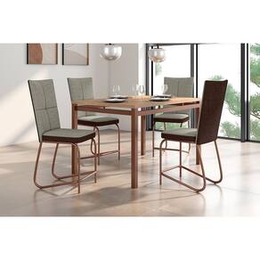 Características do Produto: Marca: Fabone Modelo: Valencia Matéria-prima: Aço Carbono Acabamento: Brilho Tampo: MDP Assento: Madeira Compensada Pés: Em polipropileno Altura dos pés: 0,5 cm Encosto: Aço carbono Revestimento do assento: Tecido/Courino Revestimento do encosto: Tecido Altura do assento ao chão: 43 cm Capacidade de carga: 80 kg Sistema de montagem: Parafusos