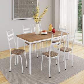 Transforme suas refeições em momentos ainda mais especiais com nosso conjunto de Mesa Adriana. Com um design moderno e versátil, ele combina perfeitamente com diversos estilos de decoração, proporcionando conforto e charme para o seu ambiente. Seja para cafés da manhã em família, jantares especiais ou encontros com amigos, este conjunto é a escolha certa para quem busca qualidade, funcionalidade e bom gosto. Acabamento da Cadeira/Banco: Pintura Epóxi Acabamento da Mesa: Pintura Epóxi Almofada do encosto: Fixa Ambiente Principal: Cozinha Cadeira/Banco estofada: Somente Assento Estofado Cadeira/Banco suporta até: 120 kg codigo_ean: 7900288142078 Complexidade da Montagem: Média: pode ser montado por mais de uma pessoa e/ou necessite de maior conhecimento para montagem Configuração do Conjunto: Mesa com Cadeiras Cor: Branco/ Rattan/ Demolição Cor da Base: Branco Cor do Produto: Branco/ Rattan/ Demolição Cor do Tampo: Marrom De Canto (Canto Alemão): Não Escala de Brilho: Semi-Brilho Espessura do Tampo: 30 mm Estrutura do Assento: mdp/12 Estrutura do Encosto: Aço Carbono Formato do Tampo: Retangular Informações Complementares: Tampo em Revestimento Bp/ Produtos Embalado com Papelão e Plastico Termoecolhivel Itens Inclusos: 1 Mesa, 6 Cadeiras, Kit Ferragens e Manual de Montagem Linha ou Coleção: Adriana Manual de Montagem e Instalação: https://cdn2.madeiramadeira.com.br/atributo/artefamol/2895587-5273-17461571810387.pdf Marca: Artefamol Material da Base da Mesa: Aço Carbono Material da Estrutura da Cadeira: Aço Carbono Material Principal das Cadeiras/Bancos: Aço Carbono Medida da Cadeira/Banco (A x L x P): 92x34x41 Medida da Mesa (A x L x P): 78x80x170 Medida do Tampo (L x C x E): 80x170x3 Mesa Dobrável: Não Mesa Extensível: Não Mesa suporta até: 60 kg Montagem Flex: Não Necessita Montagem: Sim Origem do Produto: Nacional Peso da Cadeira/Banco: 3,5 kg Peso da Mesa: 20,44 kg Possui Apoio para Braços: Não Possui Apoio Para os Pés: Não Possui Prateleiras: Não Possui Rodízio: Não Possui Suporte Giratório: Não Possui Vidro: Não Quantidade de Cadeiras: 6 Recomendações de Uso, Manutenção e Limpeza: Para manter seu móvel novo por muito mais tempo, evite locais úmidos, mantenha-o distante de líquidos e de fontes de calor. Evite a exposição prolongada ao sol. Para limpá-lo com segurança utilize uma flanela seca sem produtos abrasivos e nem lustra móveis. Sistema de Montagem: Pafusos, sapatas, arruelas Tipo de Assento: Fixo Tipo de Encosto: Fixo