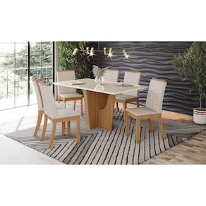 O Conjunto de Mesa com 6 Cadeiras Henn Vertice deixa a sua sala de estar mais elegante e completa. A mesa e feita em MDP, com tampo em MDF 25 mm e vidro 4 mm nao temperado. Ja as cadeiras sao produzidas com pes em MDF e encosto em MDF/MDP. O acabamento da mesa em pintura UV traz um toque moderno e elegante, para combinar com o ambiente da sua sala de jantar.