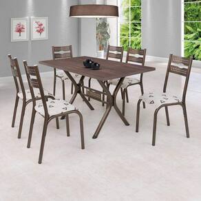 Que tal deixar sua cozinha ainda mais bonita com O Conjunto de Mesa e Cadeiras Luna? Ele possui um designer moderno, com tampo de BP Amêndoa de 136cm, possui textura em 3D (que imita a madeira natural) , mais leve permitindo a movimentação para limpeza do piso e revestimento dupla face. Suas 6 Cadeiras possuem assento anatômico e sistema de fixação com porca agarras, que proporcionam maior conforto e comodidade. Além disso suas ponteiras de proteção interna nos pés, que garante maior proteção contra riscos e ferrugem. Espessura do Tampo: 30 mm Peso da Cadeira/Banco: 3 kg Peso da Mesa: 17 kg Medida da Base (A x L x P): 74cm x 59cm x 75cm Medida da Cadeira/Banco (A x L x P): 91cm x 47cm x 46,5cm Medida da Mesa (A x L x P): 76cm x 80cm x 136cm Altura (cm): 91 cm Largura (cm): 136 cm Garantia: 06 Meses Acabamento da Mesa: Pintura Epóxi Escala de Brilho: Semi-Brilho Material Principal das Cadeiras/Bancos: Aço Material do Tampo: MDF/MDP Acabamento da Cadeira/Banco: Pintura Epóxi Material da Base da Mesa: Aço Material da Estrutura da Cadeira: Aço Carbono Quantidade do Produto: 6 Cadeiras Cor: Bronze/Bege Geométrico Almofada do Assento: Removível Marca: Ciplafe Quantidade de Lugares: 6 Possui Apoio para Braços: Não Linha ou Coleção: Luna Cadeira/Banco Suporta Até: 100 kg Cadeira/Banco Estofada: Sim Formato do Tampo: Retangular Enchimento do Assento: Espuma D-14 Possui Apoio para os Pés: Não Possui Suporte Giratório: Não Cor do Produto: Bronze/Bege Geométrico Formato da Mesa: Retangular Mesa Suporta Até: 10 kg Medida do Tampo (L x C x E): 80cm x 136cm x 3cm Estrutura do Assento: Pinus Compensado/Espuma Estrutura do Encosto: Aço Carbono Formato: Retangular Quantidade de Cadeiras: 6 Origem do Produto: Nacional Ambiente Principal: Cozinha Cor Predominante: Marrom