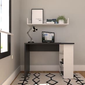Com um design moderno e funcional, essa mesa oferece espaço amplo para seu laptop, cadernos e canecas de café, além de prateleiras práticas para manter tudo organizado. A superfície de trabalho é resistente e fácil de limpar, perfeita para enfrentar a rotina diária sem perder o charme. Completa o conjunto uma prateleira versátil que combina perfeitamente com a mesa. Feita para exibir seus livros favoritos, plantas decorativas e, claro, aquele troféu especial. Com um acabamento elegante, a prateleira é o toque final que deixa seu espaço com a sua cara. Invista em conforto e estilo com esse conjunto! Acabamento do Tampo: Melamínico Acabamento dos Pés: Melamínico Acompanha Manual de Instalação: Sim Ambiente Principal: Escritório Complexidade da Montagem: Alta: deve ser montado por um montador especializado Cor: Preto/Branco Cor da Base: Preto Cor do Produto: Preto/Branco Cor do Tampo: Preto Cor Interna: Preto Dobrável: Não Escala de Brilho: Fosco Espessura do Tampo: 25 mm Formato: Retangular Itens Inclusos: Mesa, Prateleira e Ferragens e Manual de Montagem Linha ou Coleção: Kit Cubos Manual de Montagem e Instalação: https://cdn2.madeiramadeira.com.br/atributo/bramov-moveis/2084156-5228-17193390181716.pdf Material da Estrutura: MDF/MDP Material do Tampo: MDF/MDP Material dos Pés: MDP Material Principal: MDF/MDP Necessita Montagem: Sim Origem do Produto: Nacional Pés com Regulagem de Altura: Não Pés Reguláveis: Não Peso: 20 kg Peso Máximo por Prateleira: 3 kg Possui Painel: Não Possui Painel de TV: Não Possui Passa Cabos: Não Possui Porta Objetos: Não Possui Portas: Não Possui Prateleiras: Sim Possui suporte para CPU: Não Possui Suporte para Teclado: Não Possui Vidro: Não Quantidade de Prateleiras: 04 Prateleiras Recomendações de Uso, Manutenção e Limpeza: Limpar apenas com pano macio levemente umidecido. Sapatas Niveladoras: Sim Sistema de Montagem: Parafusos, cavilha e minifix. Suporta Até (kg): 35 kg