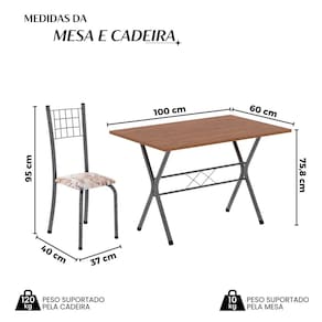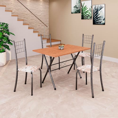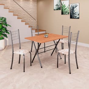 Quer deixar sua casa completa e prática? Uma dica bacana de como transformar o seu lar, deixando-o mais receptivo e bonito? Então você precisa de móveis indispensáveis para deixar seu lar muito mais aconchegante, receptivo e sempre disponível para receber a visita de amigos, familiares e convidados. Você vai se apaixonar por este incrível e moderno Conjunto de Mesa com 4 Cadeiras. Ideal para cozinha, ele é a melhor opção para completar o espaço que você desejar. Aproveite!! Medida da Mesa (A x L x P): 75,8 cm x 100 cm x 60 cm Peso da Mesa: 8,9 kg Mesa suporta até: 8 kg Acabamento da Cadeira/Banco: Pintura Texturizada Acabamento da Mesa: Pintura Texturizada Ambiente Principal: Cozinha Cadeira/Banco estofada: Somente Assento Estofado Cadeira/Banco suporta até: 120 kg codigo_ean: 7900288138781 Complexidade da Montagem: Baixa: pode ser montado por uma pessoa sozinha Cor: Bege /Prata/Cinamomo Cor do Produto: Bege /Prata/Cinamomo Cor Secundária: Bege De Canto (Canto Alemão): Não Escala de Brilho: Brilhante Espessura do Tampo: 1,5 mm Estrutura do Assento: MDP Formato do Tampo: Retangular Itens Inclusos: 1 Mesa, 4 Cadeiras, Kit Ferragens e Manual de Montagem Linha ou Coleção: Dany Manual de Montagem e Instalação: https://product-hub-prd.madeiramadeira.com.br/979663/documents/5ac33e8b-975a-4ca2-8b7c-4762af5f9016271613435281740598159533.pdf Marca: Soma Móveis Material da Base da Mesa: Aço Material da Estrutura da Cadeira: Aço Material do Tampo: MDF Medida da Cadeira/Banco (A x L x P): 95 cm x 37 cm x 40 cm Medida do Tampo (L x C x E): 60 cm x 100 cm x 1,5 cm Mesa Extensível: Não Necessita Montagem: Sim Origem do Produto: Nacional Peso da Cadeira/Banco: 2,94 kg Possui Apoio Para os Pés: Não Quantidade de Cadeiras: 4 Quantidade de Lugares: 04 Recomendações de Uso, Manutenção e Limpeza: Não permitir que molhe os pés da base, usar um pano de tecido macio e seco, evitar detergentes, alvejantes e produtos químicos de limpeza; no tampo usar tecido macio levemente umedecido. Sistema de Montagem: Parafusos