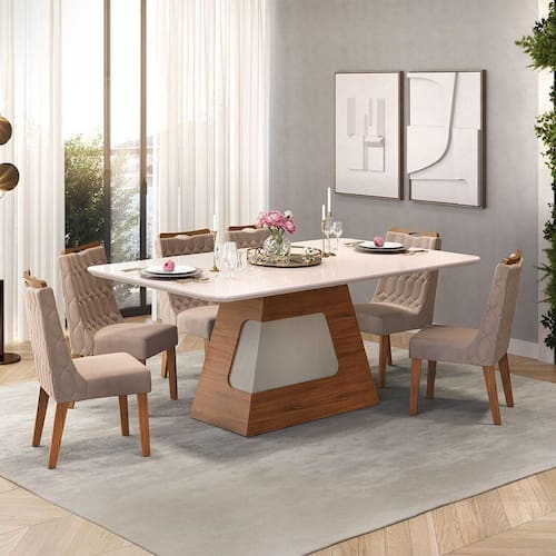 Conjunto De Mesa Dala 180x90cm Com 6 Cadeiras Bia Dj Móveis Freijó/off White/bege