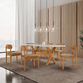 A Cadeira Bellini complementa o conjunto com conforto e sofisticação. Produzida em madeira maciça e com assento estofado, oferece estabilidade e uma experiência acolhedora à mesa. Suas linhas suaves e proporções equilibradas reforçam o estilo contemporâneo, tornando o conjunto uma escolha ideal para quem busca elegância e conforto. Medida da Mesa (A x L x P): 80cm x 180cm x 90cm Peso da Mesa: 57 kg Mesa suporta até: 35 kg Acabamento da Cadeira/Banco: Pintura Acompanha Manual de Instalação: Não Almofada do assento: Fixa Ambiente Principal: Sala de Jantar Cadeira/Banco Estofada: Somente Assento Estofado Cadeira/Banco estofada: Somente Assento Estofado Cadeira/Banco suporta até: 140 kg Cadeira/Banco Suporta Até: 140.0000 codigo_ean: 7900288352965 Complexidade da Montagem: Média: pode ser montado por mais de uma pessoa e/ou necessite de maior conhecimento para montagem Configuração do Conjunto: Mesa com Cadeiras Cor: Tutim / Imbuia Natural / Cinamomo Imbuia/ Laqueado Cor do Produto: Tutim / Imbuia Natural / Cinamomo Imbuia/ Laqueado Cor do Tampo: Off White Cor Flex: Não Cor Secundária: Marrom De Canto (Canto Alemão): Não Design da Base: Em X Escala de Brilho: Semi-Brilho Espessura do Tampo: 40 mm Estrutura do Assento: Madeira Maciça Estrutura do Encosto: Madeira Maciça Formato do Tampo: Retangular Informações Complementares: As cadeiras são entregues totalmente montadas e prontas para uso, enquanto a mesa chega pré-montada, facilitando a instalação e garantindo praticidade. Itens Inclusos: 1 Mesa, 6 Cadeiras e Kit Ferragens Linha ou Coleção: Bellini Manual de Montagem e Instalação: https://product-hub-prd.madeiramadeira.com.br/699232060/documents/1b6db716-e4d1-434b-a35d-7ad8efc5f7ea3437902584417731621722078.pdf Marca: Mobilare Material da Base da Mesa: MDF Laminado/Madeira Maciça Material da Estrutura da Cadeira: Madeira Maciça Material do Tampo: Madeira/MDF Material Principal: Madeira Maciça/MDF Material Principal das Cadeiras/Bancos: Madeira Maciça Medida da Cadeira/Banco (A x L x P): 83,5x45x51 Medida do Tampo (L x C x E): 180cm x 90cm x 4cm Mesa Dobrável: Não Mesa Extensível: Não Montagem Flex: Não Necessita Montagem: Sim Origem do Produto: Nacional Peso da Cadeira/Banco: 7,1 kg Possui Apoio para Braços: Não Possui Apoio Para os Pés: Não Possui Prateleiras: Não Possui Suporte Giratório: Não Possui Vidro: Sim Quantidade de Cadeiras: 6 Quantidade de Lugares: 06 Recomendações de Uso, Manutenção e Limpeza: Limpar com pano seco. Sistema de Montagem: Parafusos Tipo de Assento: Fixo Tipo de Encosto: Fixo