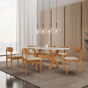 O Conjunto Bellini traduz uma estética contemporânea pensada para ambientes sofisticados, onde cada detalhe valoriza o design e o bom gosto. A Mesa Bellini possui tampo com acabamento laqueado off e canto moeda, criando uma superfície elegante e agradável ao toque. Sua estrutura em laminado de madeira cinamomo traz aconchego visual, enquanto o detalhe em X na base se destaca como elemento marcante do design, garantindo equilíbrio e personalidade à peça.