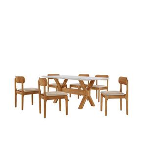 A Cadeira Bellini complementa o conjunto com conforto e sofisticação. Produzida em madeira maciça e com assento estofado, oferece estabilidade e uma experiência acolhedora à mesa. Suas linhas suaves e proporções equilibradas reforçam o estilo contemporâneo, tornando o conjunto uma escolha ideal para quem busca elegância e conforto. Medida da Mesa (A x L x P): 80cm x 180cm x 90cm Peso da Mesa: 57 kg Mesa suporta até: 35 kg Acabamento da Cadeira/Banco: Pintura Acompanha Manual de Instalação: Não Almofada do assento: Fixa Ambiente Principal: Sala de Jantar Cadeira/Banco Estofada: Somente Assento Estofado Cadeira/Banco estofada: Somente Assento Estofado Cadeira/Banco suporta até: 140 kg Cadeira/Banco Suporta Até: 140.0000 codigo_ean: 7900288350480 Complexidade da Montagem: Média: pode ser montado por mais de uma pessoa e/ou necessite de maior conhecimento para montagem Configuração do Conjunto: Mesa com Cadeiras Cor: Veludo Bege / Imbuia Natural / Cinamomo Imbuia/ La Cor do Produto: Veludo Bege / Imbuia Natural / Cinamomo Imbuia/ La Cor do Tampo: Off White Cor Flex: Não Cor Secundária: Marrom De Canto (Canto Alemão): Não Design da Base: Em X Escala de Brilho: Semi-Brilho Espessura do Tampo: 40 mm Estrutura do Assento: Madeira Maciça Estrutura do Encosto: Madeira Maciça Formato do Tampo: Retangular Informações Complementares: As cadeiras são entregues totalmente montadas e prontas para uso, enquanto a mesa chega pré-montada, facilitando a instalação e garantindo praticidade. Itens Inclusos: 1 Mesa, 6 Cadeiras e Kit Ferragens Linha ou Coleção: Bellini Manual de Montagem e Instalação: https://product-hub-prd.madeiramadeira.com.br/172542368/documents/1d2b07ff-cf79-4b65-bb03-f0adc7e12e613437902584417731621722078.pdf Marca: Mobilare Material da Base da Mesa: MDF Laminado/Madeira Maciça Material da Estrutura da Cadeira: Madeira Maciça Material do Tampo: Madeira/MDF Material Principal: Madeira Maciça/MDF Material Principal das Cadeiras/Bancos: Madeira Maciça Medida da Cadeira/Banco (A x L x P): 83,5x45x51 Medida do Tampo (L x C x E): 180cm x 90cm x 4cm Mesa Dobrável: Não Mesa Extensível: Não Montagem Flex: Não Necessita Montagem: Sim Origem do Produto: Nacional Peso da Cadeira/Banco: 7,1 kg Possui Apoio para Braços: Não Possui Apoio Para os Pés: Não Possui Prateleiras: Não Possui Suporte Giratório: Não Possui Vidro: Sim Quantidade de Cadeiras: 6 Quantidade de Lugares: 06 Recomendações de Uso, Manutenção e Limpeza: Limpar com pano seco. Sistema de Montagem: Parafusos Tipo de Assento: Fixo Tipo de Encosto: Fixo
