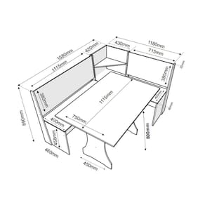 - Dimensões do Produto (LarguraXProfundidadeXAltura) Mesa: 111,5x75x80cm / Canto Maior: 158x46x89cm / Canto Menor: 118x46x89;
